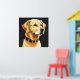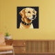 Ilustração vetorial estilizada de um recuperador de ouros vestindo uma coleira preta de couro contra um fundo escuro. A imagem retrata lealdade e elegância, adequadas para vários projetos de decoração, design ou de temática animal.