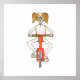 Este cachorro fofo está de bicicleta, e ele está ciclando. A bicicleta é vermelha. Esta imagem impressa era originalmente uma ilustração desenhada e pintada.