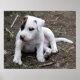 O americano Pit Bull Terrier, Bach, descansando e avaliando a situação antes que ele comece sua brincadeira de cachorrinho nos cachorros maiores.