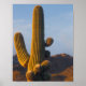 Cacto saguaro iluminado pelo sol contra céus azuis e baixa cordilheira do deserto do Arizona. Fotografado em Sabino Canyon, Tucson, Arizona