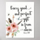 Cada presente bom e perfeito é de Acima da impressão de arte é um belo verso bíblia escrito em texto de cinza escura e complementado por flores cor-de-água rosa. Isso seria perfeito para o berçário.