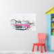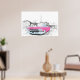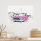 Cadillac rosa de 1959 Convertível em um fundo preto e branco da cidade. Ilustração de alta qualidade.