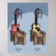 Desenho de duas cadeiras elétricas, uma com uma guitarra elétrica de volta, outra com uma guitarra acústica de volta, que é uma cadeira acústica). Arte colorida, em t-shirts, suores, impressões, merch de presente.