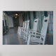 Minha fotografia de uma fileira de cadeiras brancas de balanço tiradas na Plantação Myrtle em Louisiana.