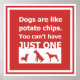 Os cães são como batatas fritas. Você não pode ter apenas um presente de Poster Excelente para amantes de cachorros! Também temos outros produtos com este design excelente! Olha só! Ser obcecado com seu cachorro é um estilo de vida. Este é um presente ideal para qualquer amante de cachorro. É um lembrete excelente do que amamos em nosso melhor amigo especial, peluche quatro pernas. Esta bela arte comemora a felicidade daqueles que compartilham suas vidas com um animal de estimação leal como um cachorro maravilhoso é. As crianças costumam jogar tempo sem fim com seus animais de paciência. Assine e marque uma data feliz dando um presente que mostra toda a ternura em seu coração às pessoas que você conhece que apreciarão e compartilharão seu amor com os animais. É também uma apresentação fantástica a pessoas que gostam de rir-se de um excelente e têm um sentido de humor excelente. Um treinador de cães ou dono de cães ficará encantado com esta surpresa. Faça um aniversário ou uma reunião em uma ocasião especial, dando esta citação humorística à família ou amigos. Você pode encontrar uma camiseta, uma Caneca ou uma Banheira de Tote com esta bela arte de design. Coloque um sorriso naquela pessoa doce que não pode parar de falar sobre seu cachorro na maioria das conversas.