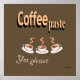 Poster, intitulado Coffee Paste, uma cópia engraçada do café Paste, com uma cópia de três canecas de café e um pedido de "sim, por favor" para o fundo, fundo castanho