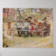 Cena familiar vitoriana com mães e crianças comendo em uma mesa piquenique. Incluído na cena está o cão da família que também tem um lugar na mesa! Vintage sueco de belas artes, aquarela de Carl Larsson.