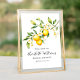 Elegante pôster ou cartão de boas-vindas para café da noite de noivado com tema de limão em aquarela que pode ser emoldurado com ilustração floral e verso azul. Personalize o texto com os detalhes da sua festa.