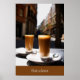 Dois cafés "Tallet" esperando para ser bebado em uma mesa de café em Barcelona, Espanha.