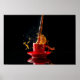 Poster de um dilúvio de café sendo derramado em uma xícara de café vermelha brilhante