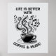 Traga harmonia para o seu espaço com este poster "A vida é melhor com café e música". Apresentando uma xícara de café com notas musicais caprichosas ascensões como vapor, esta trabalho de arte combina perfeitamente o amor da cafeína e da melodia. Seja você um entusiasta do café, um amante da música, ou ambos, este poster adiciona um toque confortável e artístico a qualquer casa, escritório ou café. Deixe cada gole e cada nota inspirar seu dia.