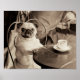© Jim Dratfield/Wild Apple. Esta imagem vintage mostra um cachorro sentado em uma cadeira com uma xícara de café na frente dele. O cachorro parece que ele está sentado em dentro café.
