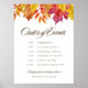 Informe aos seus convidados o cronograma do seu evento com este sinal personalizável de ordem de eventos. Apresenta folhas de aquarela em tons de outono. Personalize adicionando seus detalhes. Este sinal de horário de casamento é perfeito para casamentos outono.
