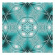 Um design caleidoscópico branco e turquesa impressionante, com padrões geométricos intrincados, linhas vivas e formas semelhantes a estrelas simétricas. Este trabalho de arte abstrato ousado e moderno combina tons legal de gelo com detalhes fractais dinâmicos, criando uma peça visualmente cativante perfeita para decoração doméstica, roupa ou acessórios.