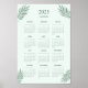 Calendário Anual 2025 Folha Tropical de Boho Folha Vegetal Exótica Boêmia Floral Minimalista Estética Mint Green Poster