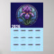 Um desenho de flor de íris roxa representado em estilo de vitral torna este um belo calendário de parede para 2026.