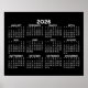 Preto e Branco - Um calendário minimalista de 12 meses com fundo de cor sólida. Um visual padrão para sua casa, escritório ou sala de aula. As fontes são simples de ler e as cores podem ser alteradas.