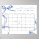 Poster Calendário do Chá de fraldas Azul de Data de Vencimento - Um encantador poster de jogo de chá de fraldas com um delicado design azul, perfeito para os convidados adivinharem a data de chegada do bebê. Este calendário elegante adiciona um toque divertido e na moda a qualquer decoração chá de fraldas, fazer-o como uma lembrança memorável para os futuros pais. Altere os dias de acordo com o mês necessário, vá para o link "Editar usando a Ferramenta de Design" para mover a data de vencimento para um dia diferente. HOW TO PLAY: Os convidados assinam o calendário com suas previsões para o aniversário do bebê. O convidado a adivinhar a data de nascimento (ou a mais próxima) ganha o jogo! *** Verifique se há jogos, convites, sinais e muito mais correspondentes na coleção *** *** Insira H124 na pesquisa de loja para encontrar todos os itens correspondentes *** Ou visite nossa Coleção de Arcos Azul. *** Este design de alta qualidade é fácil de personalizar para combinar as cores do casamento, estilos e temas. Para mais personalização, clique no link "Editar usando a Ferramenta de Design" e use nossa ferramenta design para modificar esse modelo. Se precisar de ajuda ou itens correspondentes, entre em contato comigo.