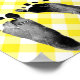 Pegadas pretas de bebê em fundo xadrez branco e amarelo para jogo de Baby Shower