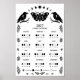 Pôster do Calendário Lunar Celestial da Mariposa e Corvo de Bruxaria Preto e Branco é perfeito para atividades de bruxaria e astrologia.