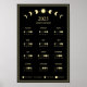 Pôster de Calendário Minimalista de Arte de Fases Lunares de 2025 em Preto e Dourado