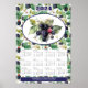 Um pôster de calendário de parede de uma página para 2024 com arte em aquarela de amoras que lembra um catálogo de sementes vintage.