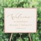 Esta delicada poster de boas-vindas para o casamento com creme de caligrafia de ouro é perfeita para um casamento moderno. A design romântica minimalista apresenta uma magnífica e elegante tipografia amarela ouro champanhe num fundo de creme de marfim com um aspecto simples e limpo. Personalize o poster com o nome da noiva e do noivo, e a data do casamento.