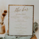 Este elegante marfim de caligrafia dourada, o poster de cardápio de bar é perfeito para um casamento simples. A design neutra apresenta uma poster minimalista decorada com tipografia falsa de ouro romântica e caprichosa. Personalize o sinal com as bebidas disponíveis na sua recepção. Nota: Este design não apresenta folha de ouro real. É um gráfico de alta qualidade feito para se parecer com folhas de ouro.