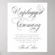 Esta placa de casamento romântica e eterno "Cerimônia Desplugada" adiciona uma simples elegância a qualquer motivo clássico. A modelo de escrita luxuosa apresenta uma bela e brilhante letra de caligrafia negra, em fundo branco. A bela fonte com uma cor de fundo personalizável facilita o ajustado de qualquer tema. Para outras cores ou produtos correspondentes, visite a loja justFharryn Zazzle ou entre em contato com o designer, c/o Fharryn@yahoo.com Todos os direitos reservados. #zazzlemade