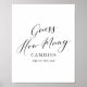 Encorajar os chás de fraldas a participar do 'Adivinhem quantos' com o símbolo elegante, apresentando uma design minimalista e caligrafia negra.