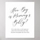 Incentivar os chás de fraldas a participar do 'Quão Grande é o Jogo da Mamãe' com o símbolo elegante, com um design minimalista e caligrafia negra.