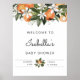 Este sinal de boas-vindas do chá de fraldas apresenta cor d'água, flores laranja e fonte divertida. Todo texto é editável.