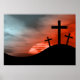 Simples silhueta preta de calvário com uma configuração vermelha do céu. Imagem disponível em vários presentes e produtos.