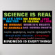 Marcha ou poster de protesto. A ciência é real, vidas negras importam, não é ilegal o ser humano, o amor é o amor, seja humano para os animais, os direitos das mulheres sejam direitos humanos, salve a América, salve a humanidade, através da educação pública, de um salário vivo, e do seguro de saúde do solteiro, bondade é tudo.
