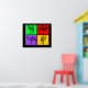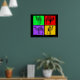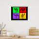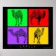 Compre este poster de camelos em cores verde, vermelha, roxa e amarela.