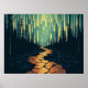 Entra num mundo de beleza mística com "Caminho da Floresta Encantado", um impressão de arte digital cativante que vos convida a embarcar numa viagem de descoberta serena. Esta peça impressionante apresenta um caminho enrolamento pavimentado com pedras radiantes e de cabanas de ouro, cortando uma floresta densa e sombria de pinheiros em torre. Acima, uma cascata respiratória de luz etérea e retangular desce dos céus, iluminando o caminho e lançando um brilho de outro mundo sobre a cena. A interação entre azuis profundos, verdes, e laranjas vibrantes cria uma atmosfera dramática, mas tranquila, evocando sentimentos de paz, maravilha e o fascínio do desconhecido. Perfeito por adicionar um toque de magia e contemplação a qualquer espaço, esta trabalho de arte é ideal para amantes da natureza, entusiastas da fantasia, e qualquer um que busque uma fuga visual única.