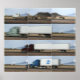 Colagem de imagens de milhões de caminhões que tecem pelo coração americano todos os anos.