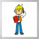 Um trabalhador da construção de uma figura de palitos, com um telefone celular ao seu ouvido, segura uma prancheta sobre T-shirts, capuzes, canecas, cartões, autocolantes, chaveiros, ímãs, relógios, capas de iphone e outras peças de roupa e presente para o homem da construção.