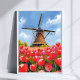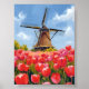 Poster Campo de Tulipas do Moinho de Vento Holandês em Aq
