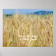 Poster com uma foto da paisagem rural de verão. Vemos campos de trigo amarelo debaixo do céu azul. Sotaque russo ao seu espaço de vida ou de trabalho, presente de na moda para amantes do estilo country. Você pode substituir o texto "Pão para hoje é pão suficiente" (Edward McKendree Bounds) por sua própria mensagem ou apagá-la. Para mais modificações (estilo de fonte, cor de fonte, posição de texto), clique em "Editar design".