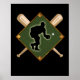 A ação esportiva e a energia dos atletas de beisebol são capturadas em silhuetas de figuras de ação demonstrando estratégias e ações no campo. Pinturas digitais e ilustrações desses adolescentes, jovens homens e profissionais incluem fundo de cores brilhantes e vívidas e rajadas de luz para destacar a ação. Inclui também ilustrações das competências reais em matéria de brincadeiras, batalhas, capturas e de campo. Esta imagem apresenta um diamante de baseball cheio de grama verde, figura de silhueta de um jogador de beisebol e apoiado por morcegos cruzados