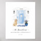 Um belo e elegante presente personalizado para novos donos de casa, a primeira casa de recém-casados, e presentes no aquecimento da casa. Nosso design apresenta nossa própria cor d'água pintada manualmente o tema da praia azul-litoral. Acentuado com luz preta na varanda, alça da porta, hardware prateado, cinza leve. Uma porta branca e marinho com uma planta de vaso moderno. Adicionamos também um cão Goldendoodle opcional que pode ser removido no painel de camadas. Adicione seu próprio texto, endereço opcional e ano de teste. Todas as ilustrações são obras de arte originais pintadas manualmente pela Moodthology.