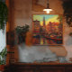 uma bela pintura, ao estilo de van Gogh, das casas de canal e barcos domésticos em Amsterdã
