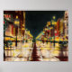 Poster com a colheita da Canal Street em Nova Orleans, Louisiana. Esta é uma impressão com a cena noturna em xeque com toques de coral e luzes noturnas de amarelo. Também disponível em canvas leves de "faaux", assim como em canvas velozes e pesadas.