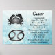 Símbolo Zodiac para Cancer de sinais do Horoscópio, poster de caranguejo azul e preto.