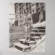 Traje de banho, estilo dos anos 30 - foto antiga a preto e branco de uma mulher descendo as escadas de pedra em frente ao hotel na praia em Cannes