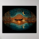 Lua crescente sobre uma canoa de madeira em uma floresta norte. Constelações no céu noturno. Arte genérica inspirada por paisagens escandinavas e norte-americanas. Canadá, Escandinávia, Noruega, Suecia, Finlândia, Alasca, Minnesota, Wisconsin, Michigan, Maine, Excelentes Lagos, Adirondacks.