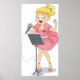 Uma garota cantando com um microfone em um vestido cor-de-rosa. Design perfeito para aquele cantor. Esta design parece realmente eficaz nestes Poster