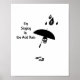 Esta é uma das minhas designs favoritas. Um esqueleto devorado deixa passos enquanto caminha pelas gotas de chuva com crânio e bósforos. Seu crânio ainda está em estaca porque ele é um guarda-chuva carregando. Legal design e slogan cantando na chuva ácida