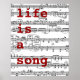 Música em folha com palavras vermelhas: a vida é uma canção